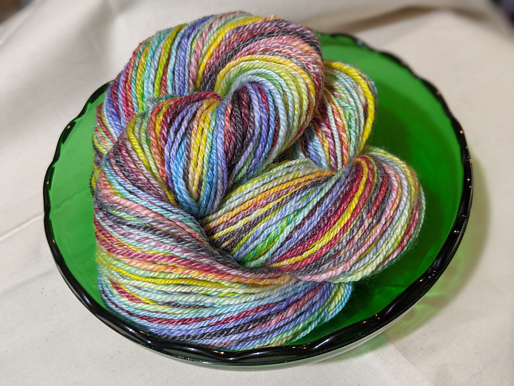 - Emily Shrider – From Nanette Wake Studio – A 4-oz hand-dyed 80/20 polwarth/silk braid